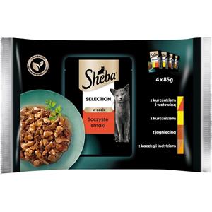 Sheba Selection in Salsa Gusti Succosi - Cibo Umido Completo per Gatti Adulti, 4x85g, Bocconcini con Pollo, Manzo, Agnello, Anatra e Tacchino