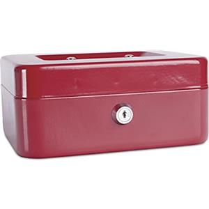 Donau Cassetta Portadenaro in Metallo Rosso con Serratura, Dimensioni 200x90x160 mm, Dotata di Vaschetta Portamonete e Maniglia