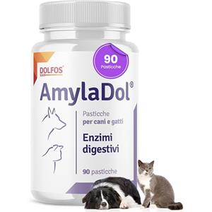 DOLFOS AmylaDol - Preparato Digestivo per Cani e Gatti, 90 Compresse con Enzimi Naturali per Disturbi Digestivi in Articoli per Veterinaria