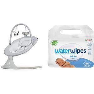 kk Kinderkraft Kinderkraft Elettrica Altalena LULI, Sdraietta Neonati, Funzioni Dondolo Automatico, Giostrina con Giocattoli, Grigio & WaterWipes Original Salviette Umidificate per Neonati Biodegradabili