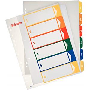 Esselte Divisori Intercalari A4 Maxi in Polipropilene Traslucido con 6 Tasti e Pagina Indice Colorata