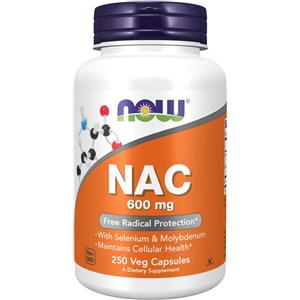 Now Foods NAC 600 mg - 250 Capsule Vegetali con Selenio e Molibdeno per la Salute Cellulare e Protezione dai Radicali Liberi
