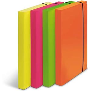 Fellowes Cartella Progetto Shock and Smile - 4 Pezzi Fluorescenti, PPL 0,6 mm, Chiusura Elastico, Dorso 3 cm