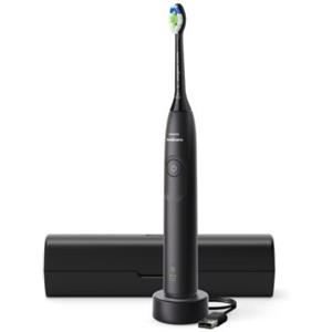 Philips HX7101/02 Spazzolino Elettrico Sonico Nero con Base di Ricarica e Custodia, 2 Livelli di Intensità, Sensore di Pressione, 62000 Movimenti al Minuto