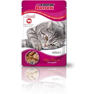BENEK Super Chunks - Alimento umido per gatti adulti con manzo in salsa, bustina da 100g