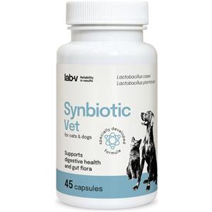 LAB-V Synbiotic Vet - Probiotici per Cani e Gatti, Supporto Digestivo e Salute Intestinale, 45 Capsule