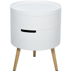 HOMCOM Tavolino da Caffè Rotondo in Legno Bianco con Vassoio Rimovibile e Apertura a Rotazione, Φ38 x 48.3cm