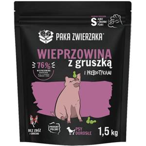 Paka Zwierzaka Cibo Secco per Cani Adulto - Maiale con Pera S 1,5 kg, 76% Carne di Maiale, Privo di Cereali e Conservanti