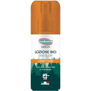 Inodorina Lozione Bio Green Orecchie 100ml - Pulizia Giornaliera con TEA TREE OIL e OLIO DI MANDORLE per Cani e Gatti