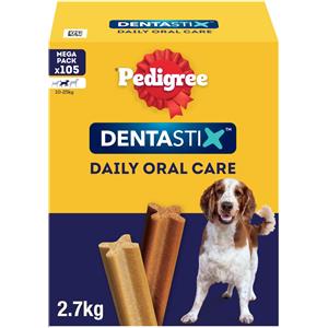 Pedigree Dog Dentastix per Cani Taglia Media (Medium) 10 - 25 Kg - Offerta [PREZZO A CONFEZIONE] Quantità minima 2, Confezione da 105 Stick