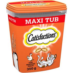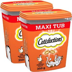 Catisfactions Snack per Gatto, Formato Scorta 700 g al gusto Pollo, 2 Maxi Tub da 350 gr Ciascuno
