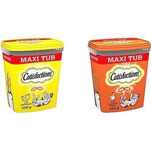 Catisfactions Snack per gatto, Formato Scorta 700g al gusto Formaggio, 2 Maxi Tub da 350gr ciascuno & Snack per Gatto, Formato Scorta 700 g al gusto Pollo, 2 Maxi Tub da 350 gr Ciascuno