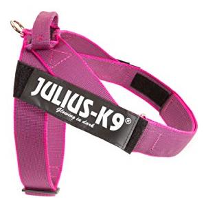 Julius-K9 Pettorina K9 Fucsia M/0 (58-76 cm) - Nylon Professionale con Maniglia e Anello in Acciaio
