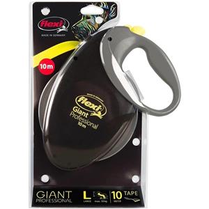 FLEXI Guinzaglio Gigante Professionale 10 m Nero/Giallo Neon - Alta Qualità, Fino a 50 kg, Impugnatura Ergonomica