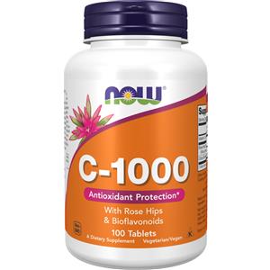 Now Foods Vitamina C-1000 con Rosa Canina e Bioflavonoidi - 100 Compresse Antiossidanti per il Sistema Immunitario