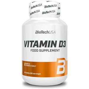 BioTechUSA Vitamin D3 60 Compresse - 50 µg di Vitamina D3 per Ossa e Muscoli Sani, Senza Glutine e Non OGM