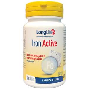LongLife Iron Active - Integratore di Ferro Micronizzato con Vitamina C, 60 Tavolette, Alta Tollerabilità Gastrica