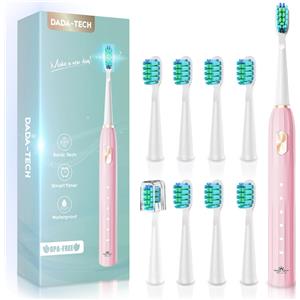 Dada-Tech Spazzolino Elettrico Sonico per Adulti con Setole Arrotondate, 5 Modalità di Pulizia, Timer da 2 Minuti e 9 Testine di Ricambio
