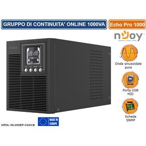 NJOY Echo Pro 1000 UPS Tower 1000VA 800W Doppia Conversione OnLine con Onda Sinusoidale Pura, 3 Uscite Schuko, USB, RS232, EPO e Slot SNMP in Gruppi di Continuità