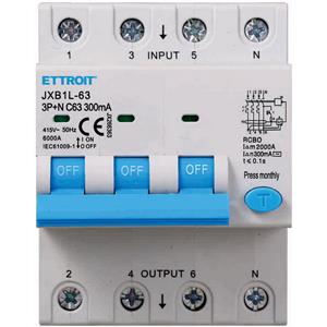 ETTROIT Interruttore Magnetotermico Differenziale 3P N 63A 6kA 300mA 380V - Protezione Completa in 4 Moduli DIN