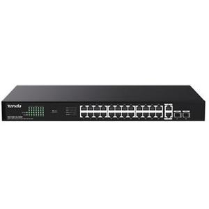 Tenda TEG1126P-24-410W Switch di rete Non gestito 24 Porte Gigabit Ethernet (10/100/1000) con 2 Porte SFP e Supporto Power over Ethernet (PoE) 410W Montaggio Rack 1U