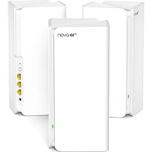 Tenda MX21 Pro Sistema Mesh WiFi 6E Tri-Band AXE5700 con CPU Quad-Core e 7 Antenne - Confezione da 3 per Copertura Fino a 7 Camere