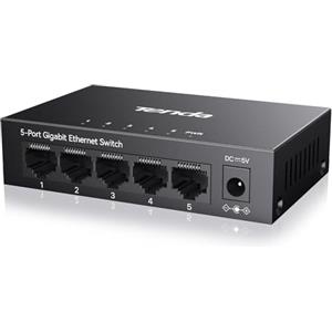Tenda TEG1005D Switch di Rete Non Gestito 5 Porte Gigabit Ethernet (10/100/1000) con Protezione Fulmini, Plug & Play, Montaggio Desktop o a Parete in Switch