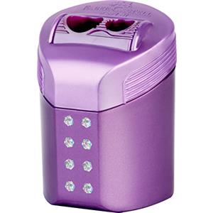 Faber-Castell Temperamatite RollOn Sparkle - con serbatoio, 2 fori, colori assortiti (Ocean, Rose, Violet) - conf. 6 pz