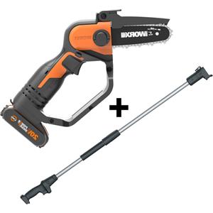 Worx WG324E - Potatore manuale a batteria 20V 2 Ah + asta di prolunga