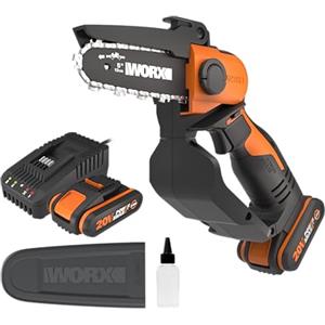 WORX WG324E.9 - Motosega compatta senza fili, 12 cm, 20 V, solo strumento, motore ad alta efficienza, design leggero e sicuro, senza batteria o caricabatterie