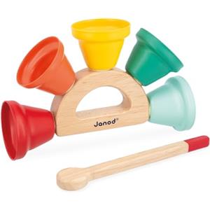 Janod Campanelle Gioia - Giocattolo Musicale per Bambini con 5 Campanelle Colorate e Impugnatura in Legno FSC, dai 18 Mesi