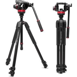Manfrotto 055 Treppiede Video con Testa Video 502 in Alluminio - Movimenti Fluidi, Colonna di Livellamento e Chiusura a Leva