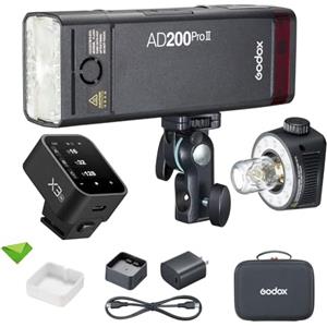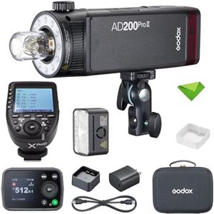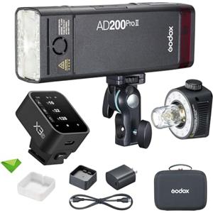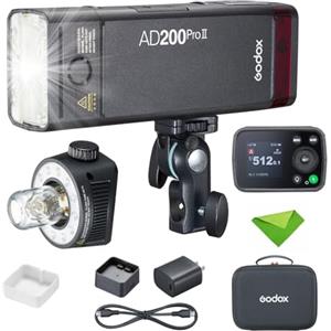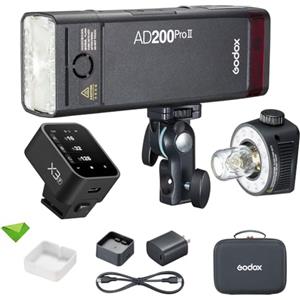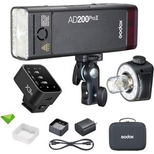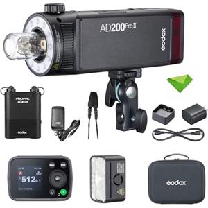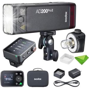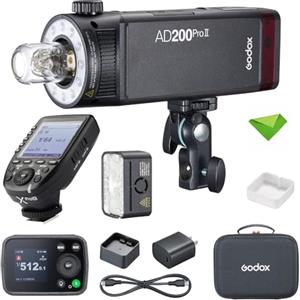 Godox AD200 Pro II Pocket Flash,testa flash aggiornata con lampada di modellazione,indicatore colore e schermo,200Ws 2.4G TTL Speedlite Strobe flash esterno,1/8000 HSS Monolight con batteria al litio