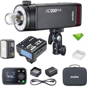 GODOX AD200 Pro II AD200Pro II 200Ws 2.4G Flash Strobe+Godox XPro-F Flash Trigger per Fuji, 0.01-1.8s Riciclaggio LED bicolore Modellazione TTL Pocket Monolight per fotocamere DSLR