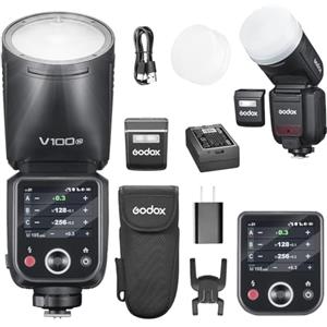 Godox V100N V100 N Round Head Camera Flash for Nikon Camera Flash Speedlite Speedlight,100Ws 2.4G TTL1/8000 HSS,400 Full Power Flashes,7.2V/2980mAh Li-ion Battery,1.7s Recycle Time,LED Modeling Lamp