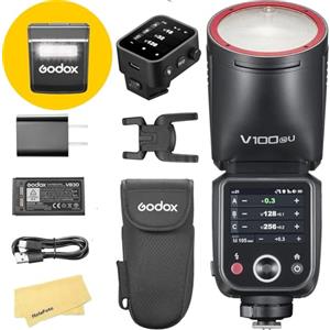 Godox V100 Flash Professionale per Nikon - 100W, Testa Rotonda, Potenza Regolabile e Funzioni Avanzate in Flash per Fotocamere