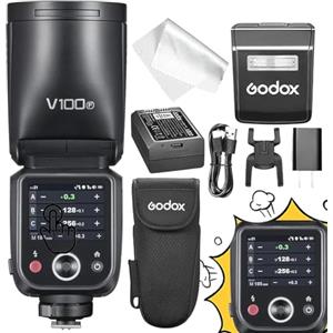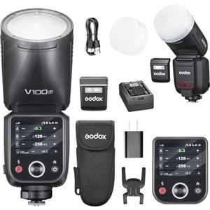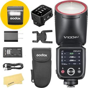 Godox V100F V100 F Flash per Fotocamera a Testa Rotonda con Trigger X3-F per Fujifilm,100Ws 2.4G TTL1/8000 HSS,400 Flashes a Piena Potenza,Batteria Agli Ioni Litio 7.2V/2980mAh,Tempo Riciclo 1.7s