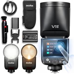 Godox V1-S + XPRO-S Trigger, Li-on TTL On-Camera Round Flash Speedlight Compatibile con fotocamere Sony Mi Hotshoe