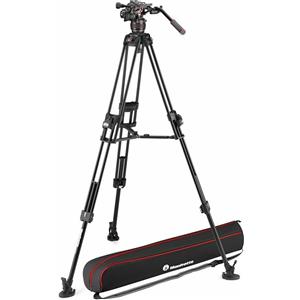 Manfrotto MVK608TWINFA - Treppiede Video in Alluminio con Testa Fluida Nitrotech 608, Portata 14kg, Sistema di Controbilanciamento e Piedini Stabili