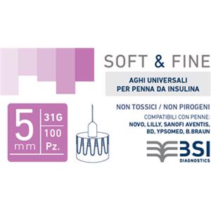 BIOCHEMICAL SOFT&FINE Ago per Penna da Insulina 31G 5mm - 100 Pezzi, Universali e Non Tossici