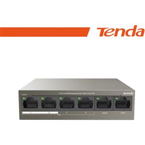 Tenda TEF1106P-4-63W Switch PoE 6 Porte 10/100 Mbps con 4 Porte PoE e 2 Uplink, Potenza Totale 63W