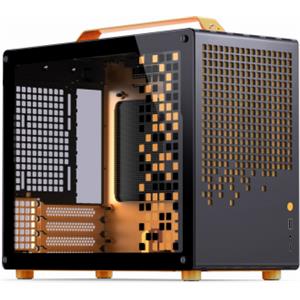 JONSPLUS Case Z20 Mini ITX/Micro ATX - Nero/Arancio, Acciaio, Vetro Temperato, Design Compatto