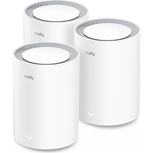 Cudy M3000 3-Pack Sistema Wi-Fi Mesh Dual-band (2.4 GHz/5 GHz) Wi-Fi 6 (802.11ax) Grigio e Bianco, Interno, Copertura fino a 603,8 m²