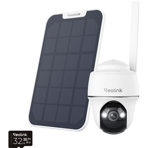 Reolink Go PT Plus+Pannello solare, telecamera di sicurezza a batteria 2K+ 5MP 4G LTE, panoramica e inclinazione, senza WiFi, slot per scheda SIM, scheda SD da 32 GB