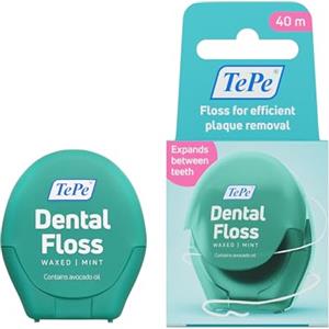 TePe Filo Interdentale Cerato 40m - Largo e Piatto con Gusto Fresco alla Menta per una Pulizia Efficace