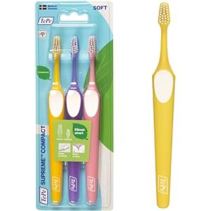TePe Spazzolino TePe Supreme Compact, Soft, blister 3pz, raggiungimento ottimale con le setole su due livelli, spazzolino con testina piccola