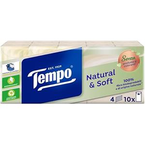 Tempo Fazzoletti Natural & Soft - 10 Pacchetti da 9 Fazzoletti, 100% Biodegradabili e Senza Allergeni
