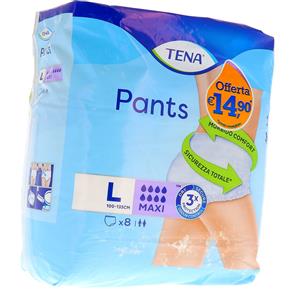 Essity Italy Tena Pants Maxi L - Mutandine Assorbenti per Incontinenza, 8 Pezzi, Tripla Protezione e Comfort