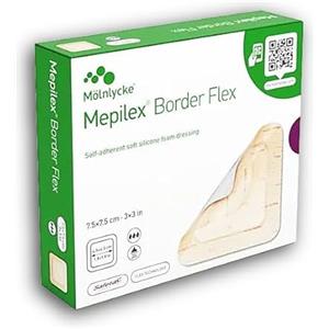 Mepilex Border Flex - Medicazione Sterile Autoadesiva in Schiuma di Silicone 7,5x7,5 cm, 5 Pezzi con Tecnologia Flex