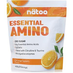 NATOO Essential Amino 420 g - Aminoacidi Essenziali in Polvere con BCAA e Vitamine per Prestazioni e Recupero Ottimali - Gusto Orange Splash